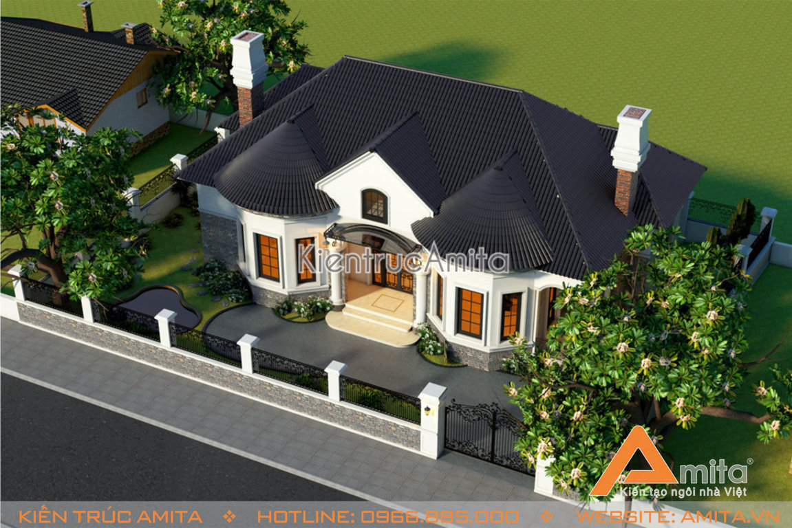 Công ty thiết kế kiến trúc Amita với thế mạnh thiết kế các công trình biệt thự kiểu Pháp, biệt thự 1 tầng tân cổ điển, hiện đại khắp mọi miền đất nước, là thương hiệu được nhiều người ưa chuộng hiện nay. Bài viết hôm nay, Amita xin giới thiệu tới bạn đọc và quý vị phương án thiết kế những mẫu nhà biệt thự 1 tầng mang phong cách tân cổ điển sang trọng.