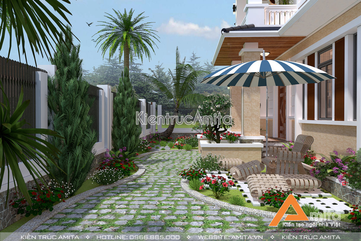 Một góc sân vườn đẹp của mẫu biệt thự 2 tầng phong cách hiện đại