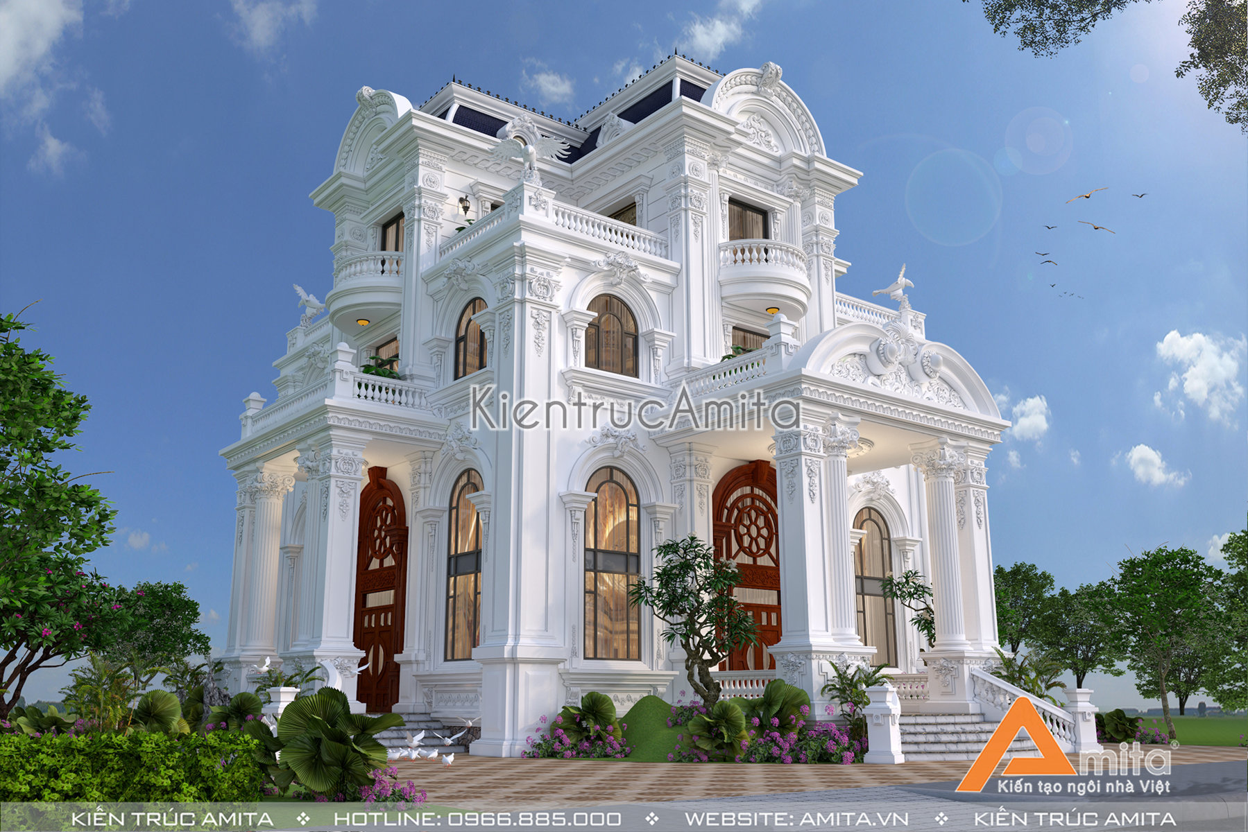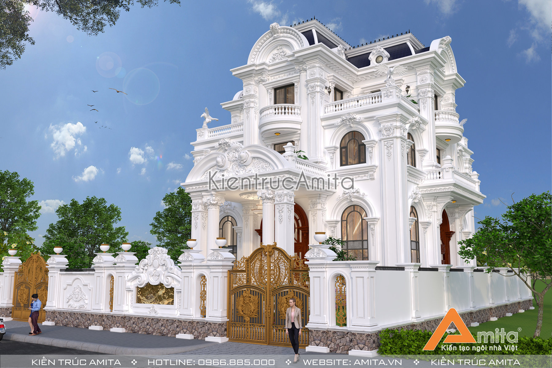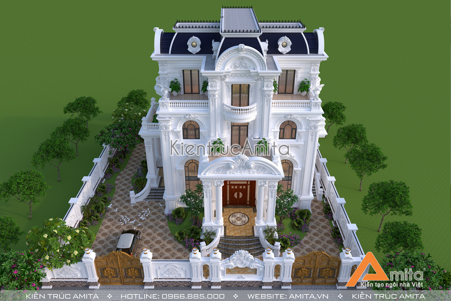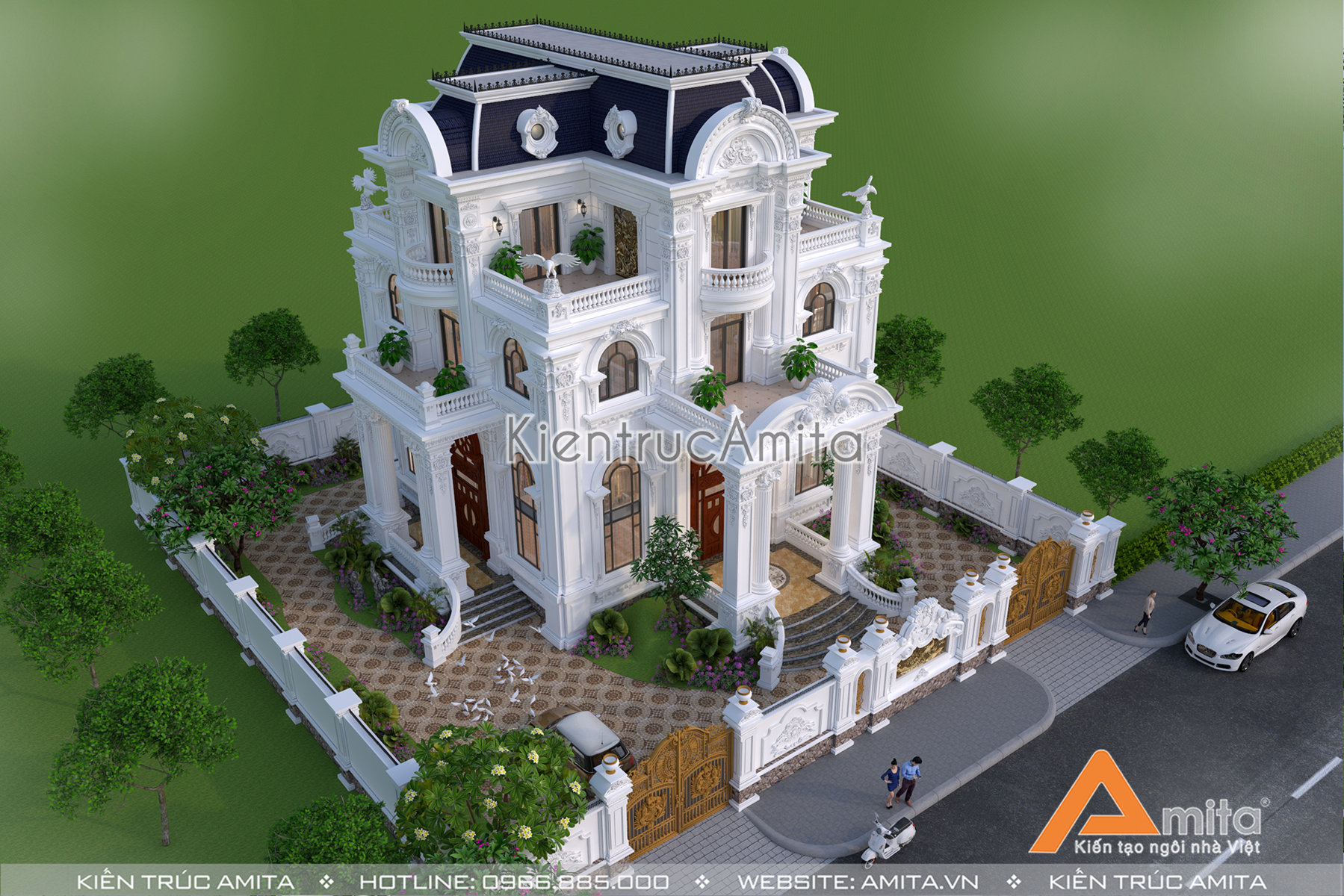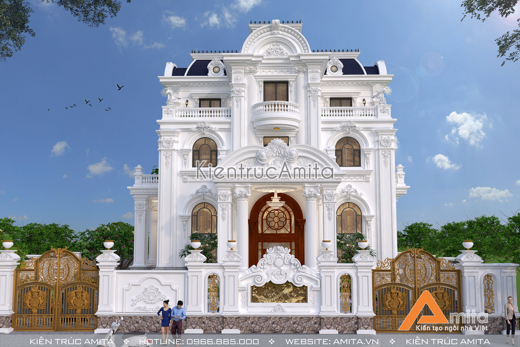 Với đội ngũ kiến trúc sư giàu kinh nghiệm từ nhiều trường đại học nổi tiếng, chúng tôi tự tin đem lại sự hài lòng cho mọi gia chủ. Nếu như bạn thích mẫu biệt thự 4 tầng phong cách tân cổ điển và mong muốn sở hữu một ngôi nhà ở cao cấp với phong cách tương tự thì thì hãy liên hệ với kiến trúc Amita để được tư vấn miễn phí và cụ thể: