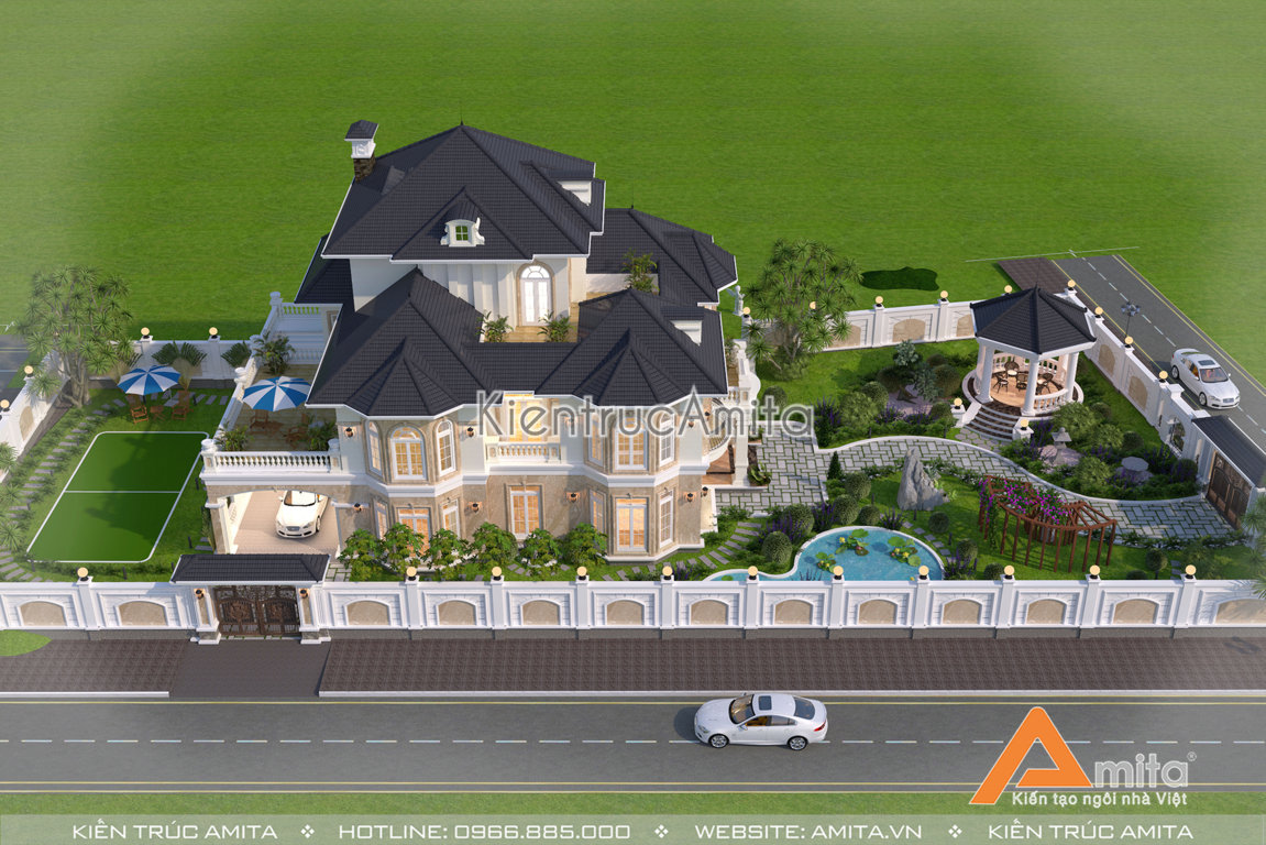 Ngày hôm nay, AMITA sẽ gửi tới các bạn mẫu biệt thự vườn tân cổ điển 3 tầng, là một trong những căn nhà mang kiến triến trúc Pháp đẹp tinh tế và đầy lôi cuốn. Thiết kế với cách tạo hình ấn tượng, tính thẩm mỹ và công năng luôn sử dụng được đánh giá rất cao vì thế đã hoàn toàn thuyết phục trái tim của tất cả thành viên trong gia đình bà Huyền. Công trình này không những mang đến niềm kiêu hãnh của chủ đầu tư mà còn góp phần nâng cao thương hiệu của kiến trúc AMITA trên địa phận tỉnh Hải Dương nói riêng và tại đất nước Việt Nam chúng ta nói chung. Sau đây, xin mời mọi người đến với vẻ đẹp của căn biệt thự qua những hình ảnh phối cảnh 3D dưới đây!