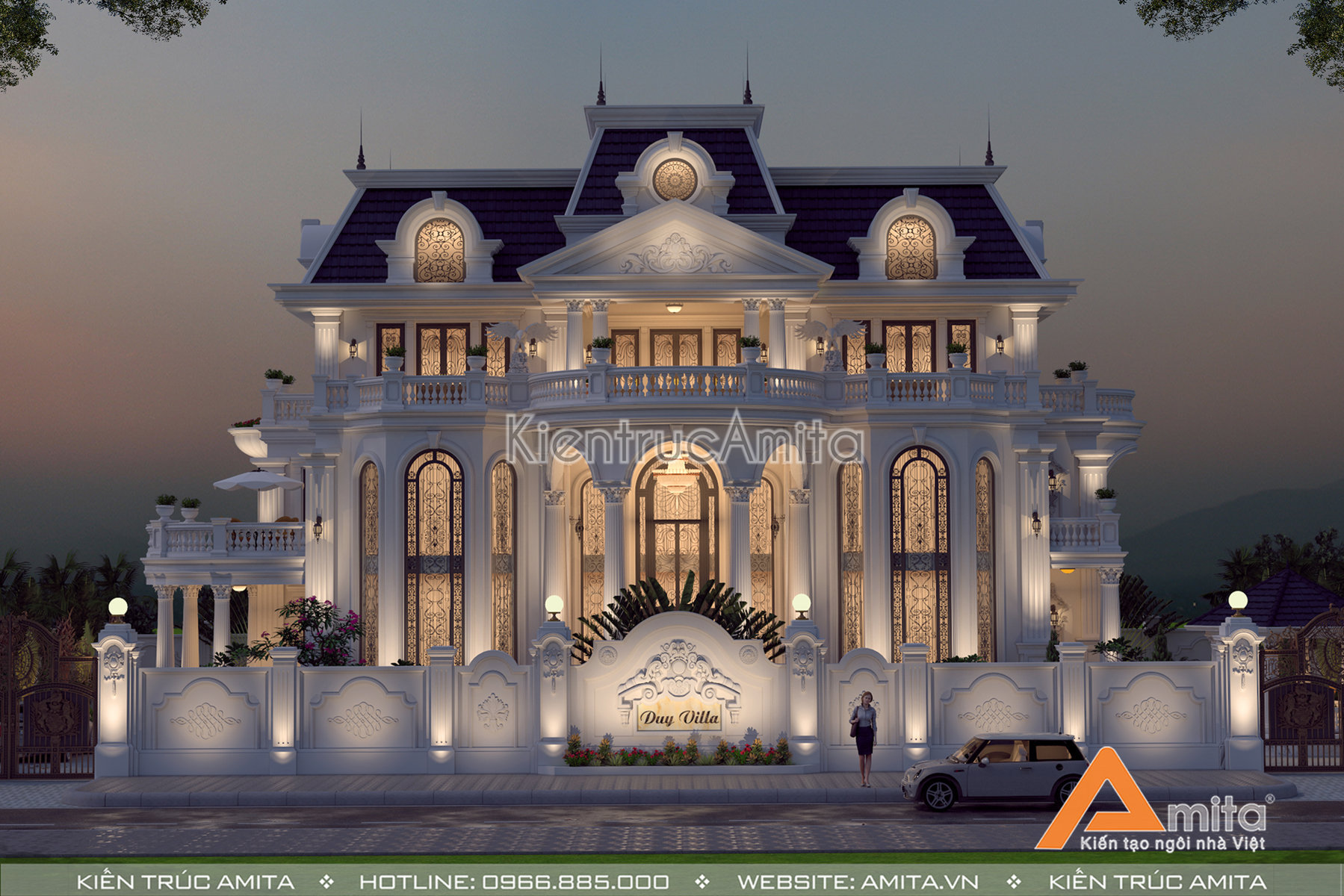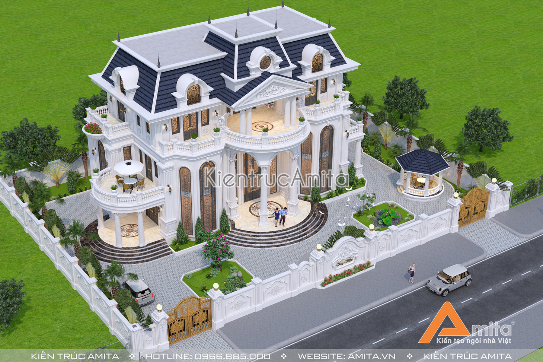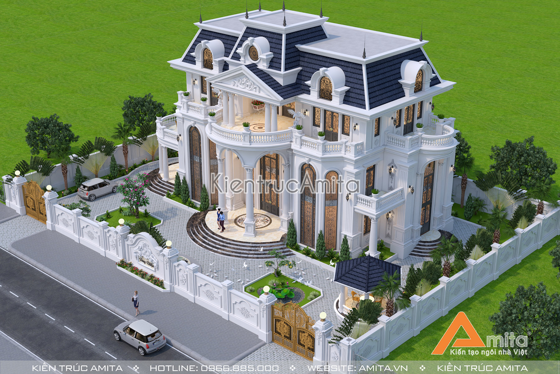 Mẫu dinh thự BT32144 là một trong những công trình biệt thự lâu đài nổi bật của công ty thiết kế kiến trúc Amita. Biệt thự 3 tầng kiến trúc Pháp được xây dựng trên diện tích 211m2 với quy mô rộng lớn và đẳng cấp, sang trọng, để mang tới những không gian sống tiêu chuẩn cực cao thể hiện uy quyền và tính hoàn mỹ của công trình.