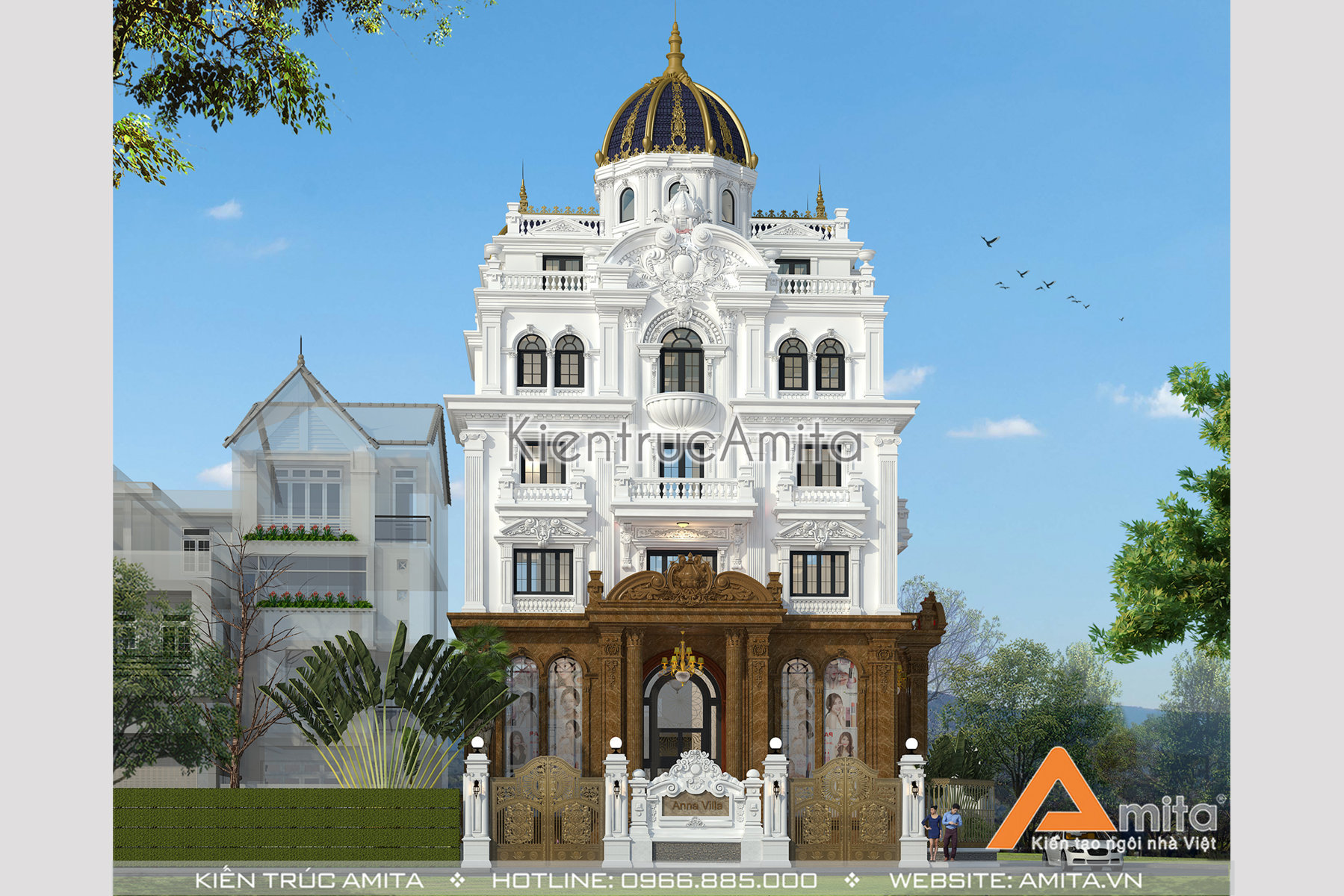 Hãy cùng chiêm ngưỡng mẫu lâu đài dinh thự tân cổ điển mà các KTS Amita tâm huyết kiến tạo cho gia đình ông An tại Nghệ An, mã công trình BT52130. Với thiết kế cầu kỳ, tráng lệ tạo nên sự uy nghi lộng lẫy của ngôi dinh thự. Liên hệ với chúng tôi để được tư vấn các thiết kế phù hợp với nhu cầu sử dụng và thị hiếu của gia đình bạn. Hotline 0966.885.000