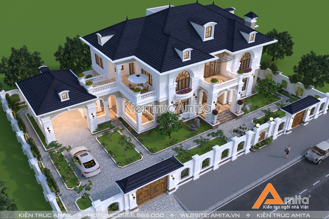 Hiện nay, nhu cầu thiết kế biệt thự 2 tầng mái Thái tân cổ điển đang ngày được các chủ đầu tư ưa thích và lựa chọn làm căn nhà ở cao cấp của mình. Biệt thự 2 tầng với bố cục không quá đồ sộ, kiến trúc ngoại thất đẹp mắt cùng công năng đáp ứng được nhu cầu sống và sinh hoạt của gia đình có nhiều thành viên. Bên cạnh đó, những thiết kế nhà biệt thự hiện nay còn được trang bị gara để xe cùng không gian sân vườn tươi mát, hứa hẹn sẽ mang đến những trải nghiệm vô cùng tuyệt vời, một cuộc sống thật sự đẳng cấp. Kiến trúc Amita, HOTLINE 0966885000, tự tin là sự lựa chọn số một cho ngôi nhà của bạn. Hãy tham khảo công trình qua hình ảnh phối cảnh 3D tuyệt đẹp dưới đây và thêm vào bộ sưu tập ý tưởng cho ngôi nhà của bạn sau này nhé!