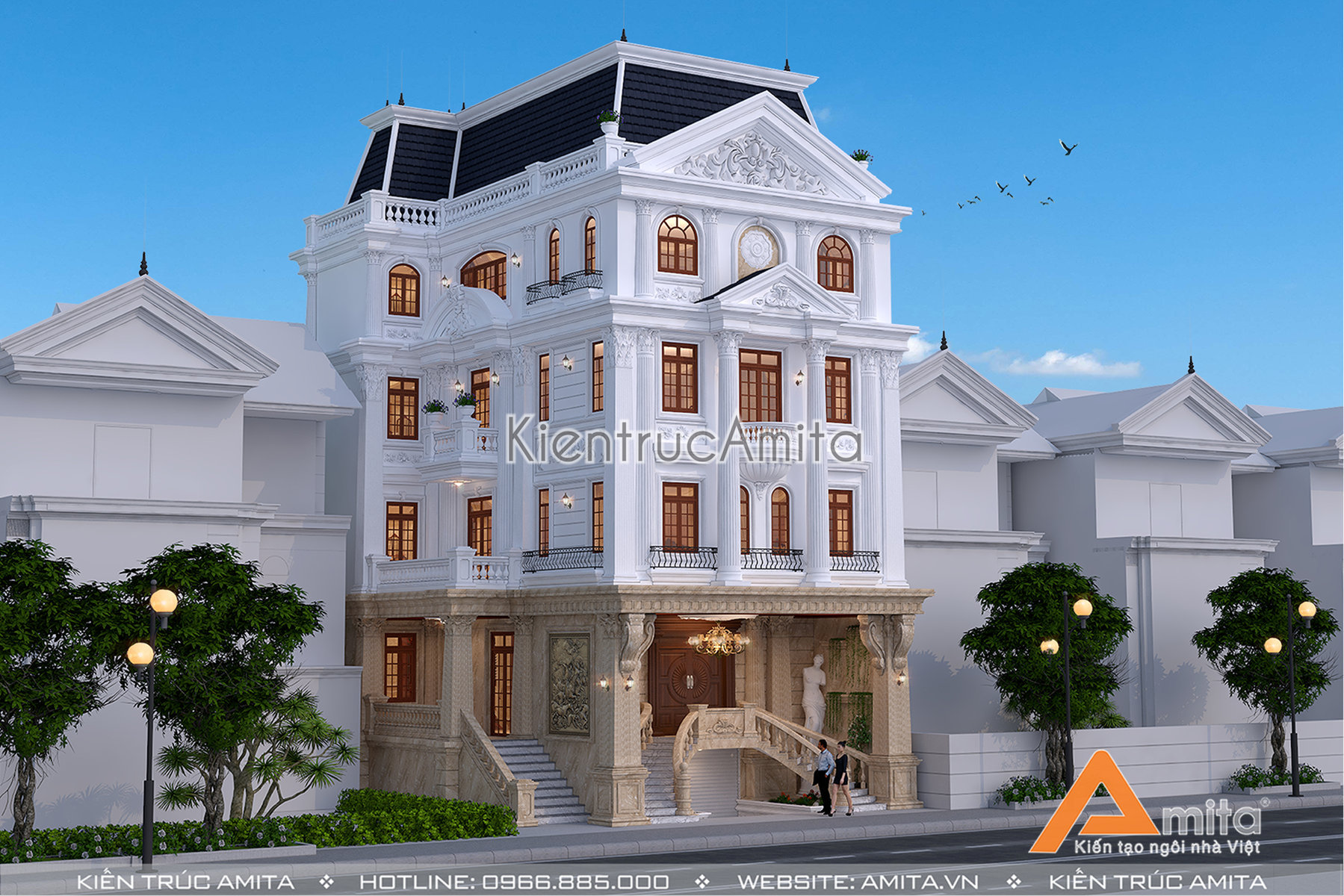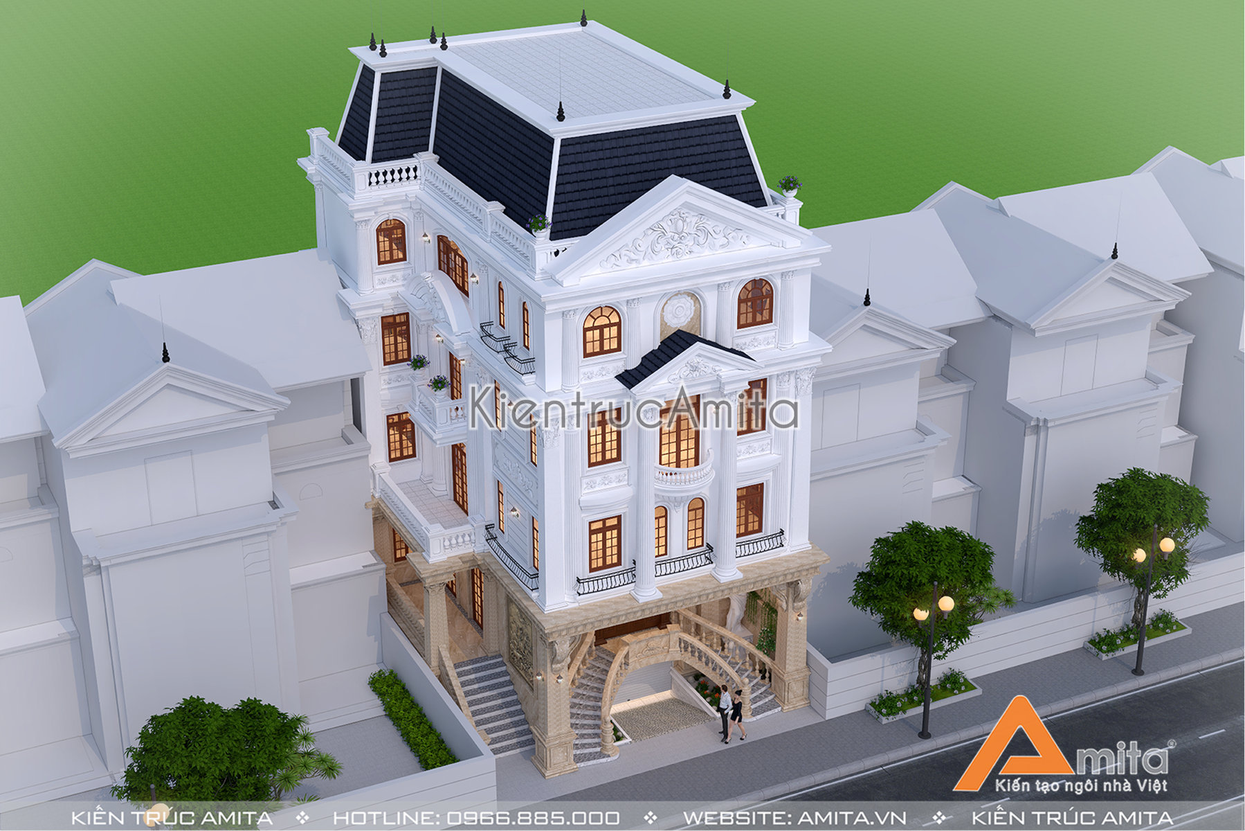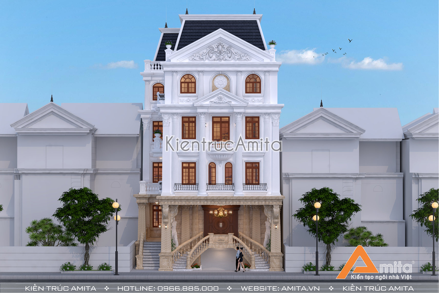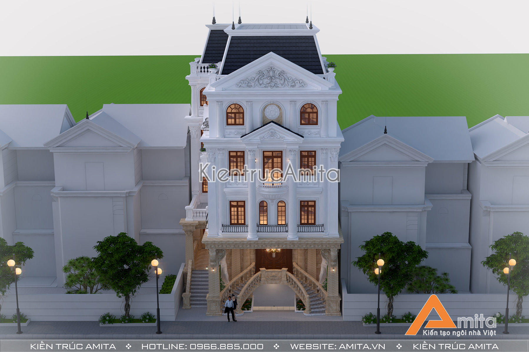 Mẫu nhà ở kết hợp văn phòng công ty sở hữu ngoại thất ấn tượng, đẳng cấp với phong cách kiến trúc tân cổ điển mang dáng dấp của các công trình Pháp nên có bố cục khá đồ sộ đã phần nào cho thấy sự thành đạt của chủ đầu tư. Nội thất tiện nghi với cách sắp xếp, bố trí không gian lý tưởng để nhu cầu sống, học tập và làm việc không bao giờ là trở ngại.