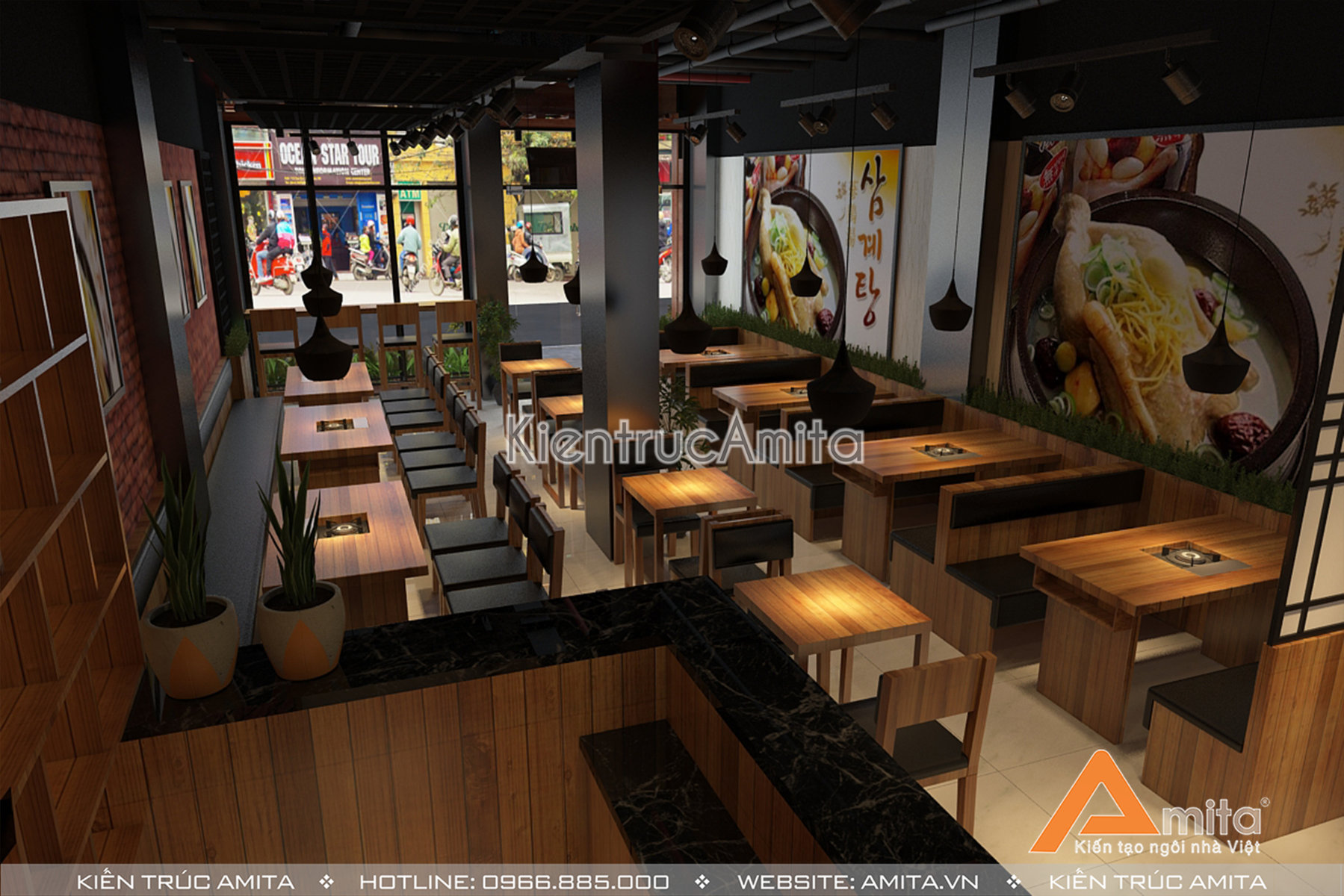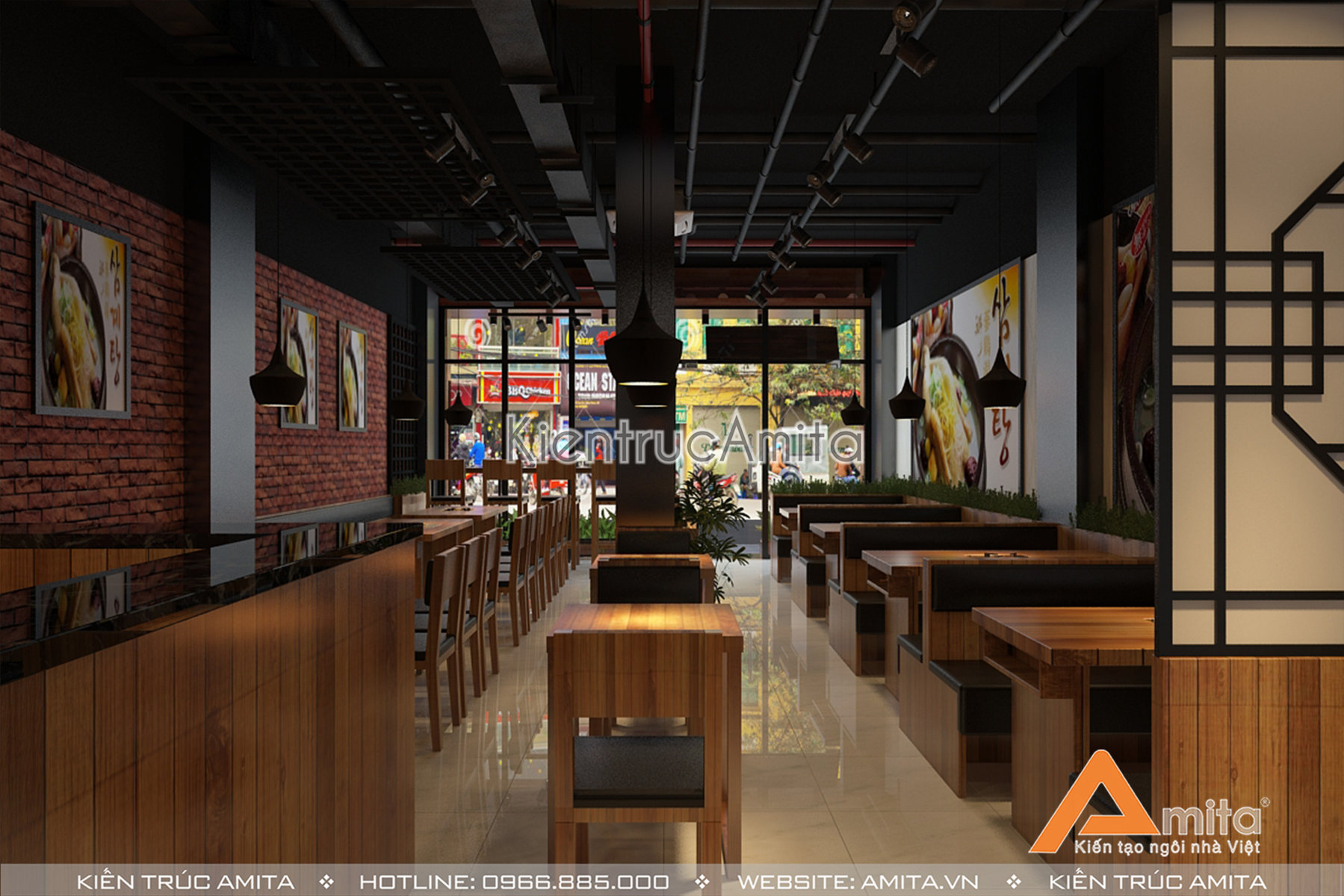 Thiết kế nội thất nhà hàng đẹp là một trong những tiêu chí vô cùng quan trọng. Nếu như những món ăn ngon sẽ giúp chủ đầu tư khẳng định được chất lượng và dịch vụ của mình thì nội thất lại là thước đo đánh giá khả năng kinh doanh của nhà hàng đó. Vì vậy, trước khi muốn mở một cửa hàng thì ngoài việc có sản phẩm và dịch vụ tốt thì bạn cần chú trọng thiết kế nội thất sao cho thật ấn tượng, hấn dẫn, đúng với đặc trưng loại hình kinh doanh của mình. Để làm được việc đó một cách dễ dàng bạn cần một người một người am hiểu kiến trúc xây dựng, kiến thức về nguyên vật liệu mới có thể giúp bạn tối ưu hóa những lợi ích và giảm thiểu rủi ro về mặt bằng, không gian nhà hàng của mình. Không ai có thể làm việc này tốt hơn một kiến trúc sư. Amita với đội ngũ kiến trúc sư giỏi cùng tài năng được thể hiện qua các công trình trên khắp cả nước tự tin giúp bạn có được một nhà hàng đẹp về thẩm mỹ, tối ưu hóa về công năng để việc kinh doanh trở nên thuận lợi cũng như giúp khách hàng có những trải nghiệm thú vị khi đến với nhà hàng của bạn.