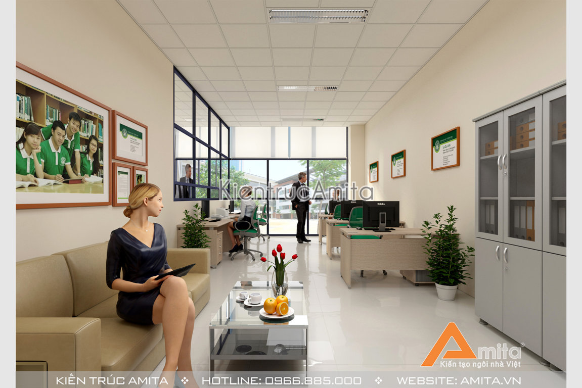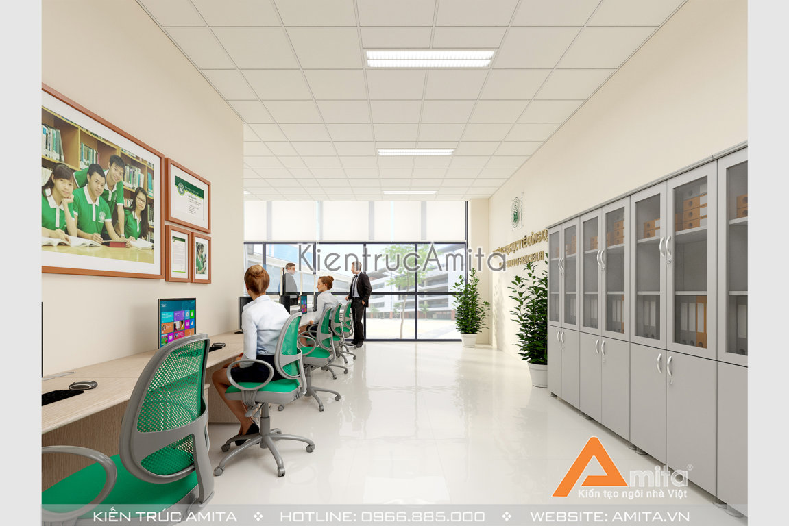 II. Những hình ảnh phối cảnh 3D của mẫu thiết kế nội thất văn phòng Đại học y tế công cộng phong cách hiện đại NT31044: