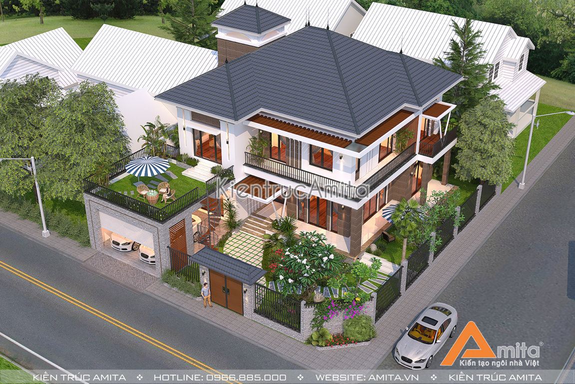 Mẫu thiết kế biệt thự 2 tầng hiện đại với với thẩm mỹ cao, có hệ thống sân vườn đem lại một không gian trong lành giúp nâng cao giá trị và chất lượng cuộc sống. Nếu như bạn còn những khúc mắc hay ý tưởng nào đó cần được hoàn thiện thì hãy gọi Amita nhé! Với đội ngũ kiến trúc sư có trình độ chuyên môn cùng gu thẩm mỹ cao từ các trường đại học nổi tiếng, chúng tôi luôn mong muốn mang lại những sản phẩm và dịch vụ tốt nhất để hoàn thiện ước mơ về ngôi nhà của bạn.!