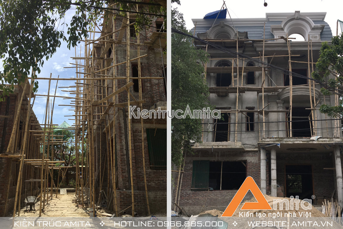 Có được bản thiết kế đẹp trên giấy đã khó, đưa bản thiết kế đẹp ấy ra ngoài thực tế còn khó hơn. Thi công biệt thự tân cổ điển ở Nghệ An được các KTS Amita lên kế hoạch và theo sát rất kĩ công trình nhằm đảm bảo công trình sau khi hoàn thiện đáp ứng được đúng yêu cầu về mặt thẩm mỹ cũng như công năng được miêu tả trong bản vẽ.