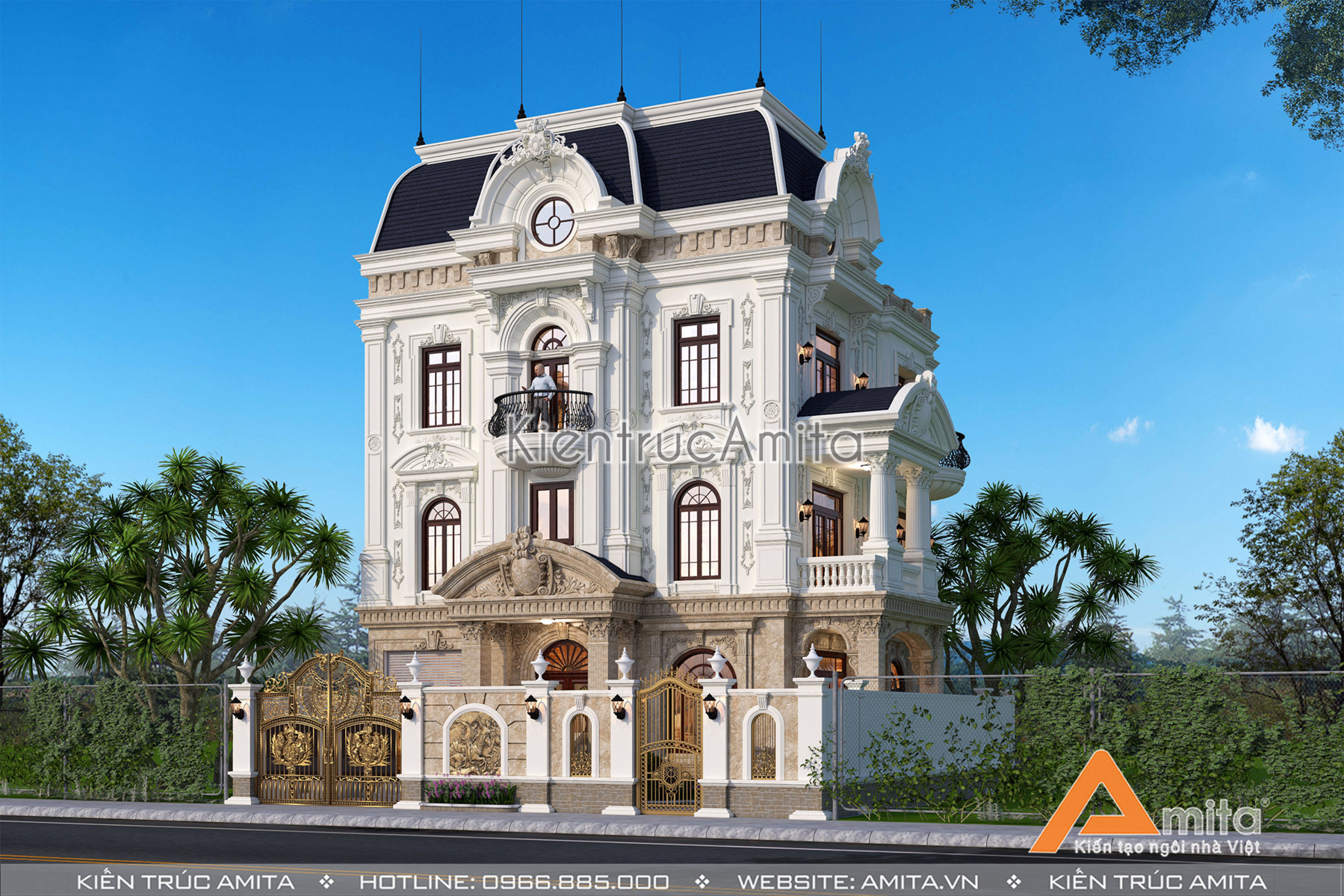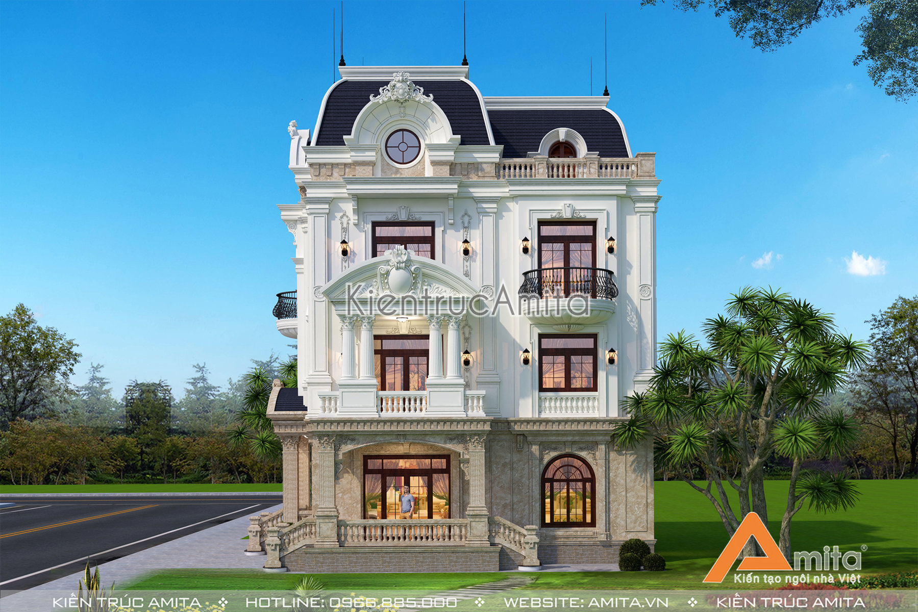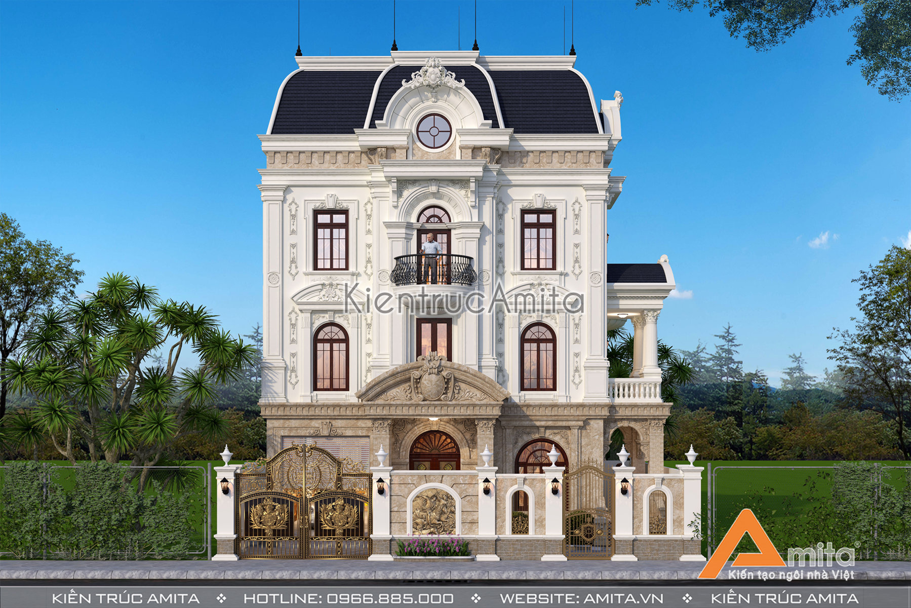 Thiết kế biệt thự 4 tầng kiến trúc Pháp với mái Mansard mang tới vẻ đẹp đặc trưng của những công trình phong cách châu Âu đắt giá luôn được các chủ đầu tư có gu thẩm mỹ cao cùng tiềm lực tài chính hùng hậu lựa chọn làm ngôi nhà ở cao cấp của mình. Lối kiến trúc biệt thự tân cổ điển Pháp mang tầm đẳng cấp nên đề cao sự cầu kỳ. Vì thế, chỉ có những đội ngũ thi công có kinh nghiệm lâu năm, những người thợ có tay nghề cao mới có thể làm chủ được những đường nét phức tạp, tạo ra những họa tiết hoa văn sắc sảo. Kiến trúc Amita tự hào được ông Long tin tưởng, lựa chọn là đơn vị thiết kế và thi công ngôi nhà mơ ước của ông tại Hải Phòng. Để đáp ứng lại sự tin tưởng, đồng thời thể hiện được năng lực của mình: chúng tôi đã dành trọn tâm huyết để tạo ra một đường lối kiến trúc mới dành riêng cho căn biệt thự của gia đình ông.
