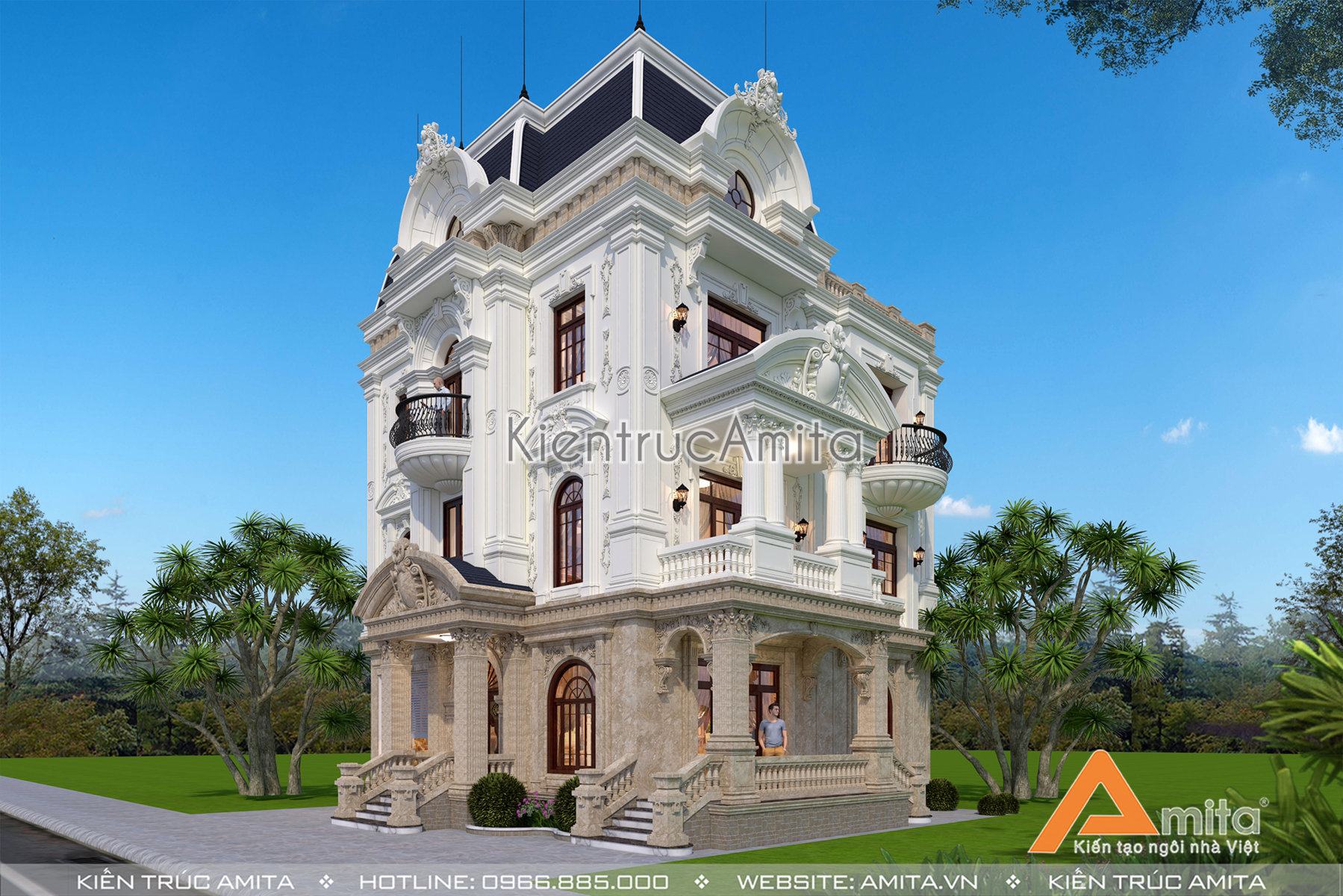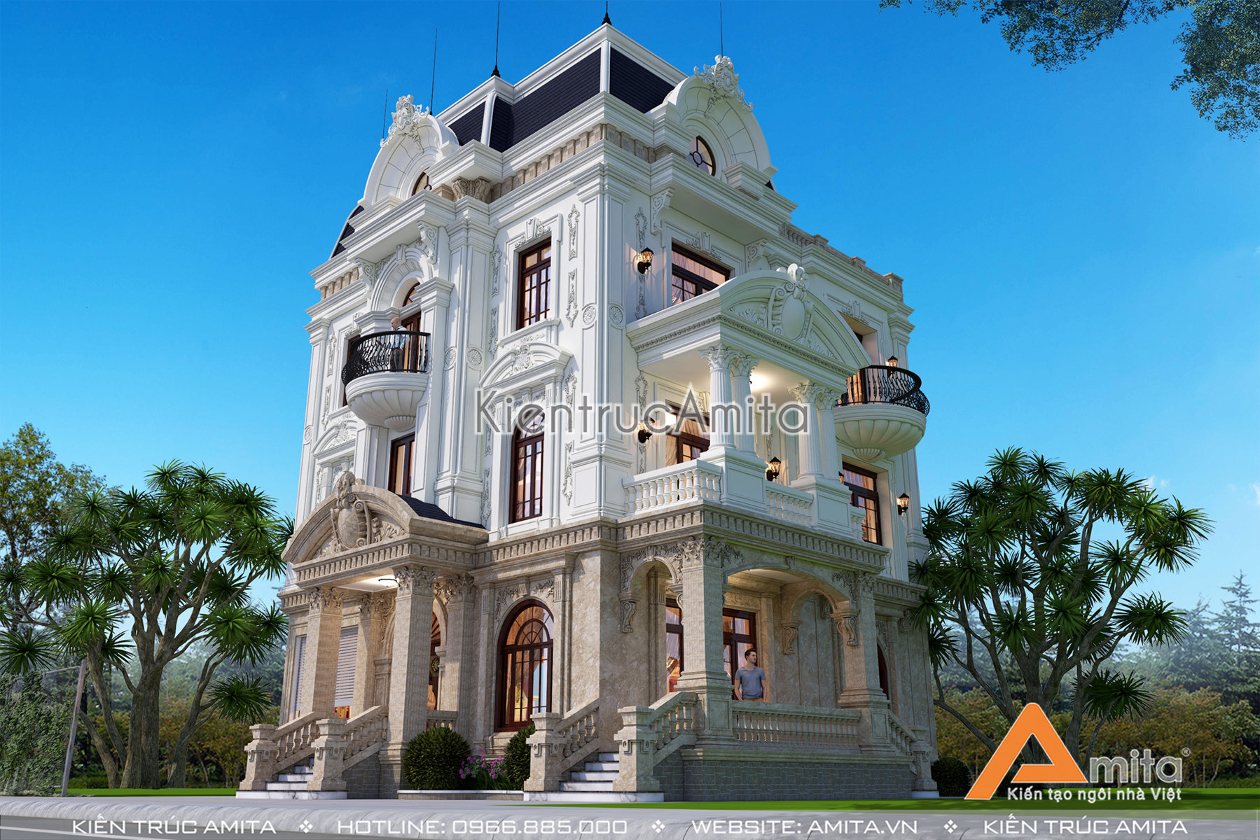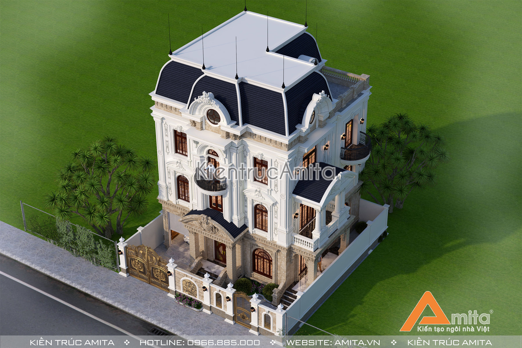 Thiết kế biệt thự 4 tầng kiến trúc Pháp với mái Mansard mang tới vẻ đẹp đặc trưng của những công trình phong cách châu Âu đắt giá luôn được các chủ đầu tư có gu thẩm mỹ cao cùng tiềm lực tài chính hùng hậu lựa chọn làm ngôi nhà ở cao cấp của mình. Lối kiến trúc biệt thự tân cổ điển Pháp mang tầm đẳng cấp nên đề cao sự cầu kỳ. Vì thế, chỉ có những đội ngũ thi công có kinh nghiệm lâu năm, những người thợ có tay nghề cao mới có thể làm chủ được những đường nét phức tạp, tạo ra những họa tiết hoa văn sắc sảo. Kiến trúc Amita tự hào được ông Long tin tưởng, lựa chọn là đơn vị thiết kế và thi công ngôi nhà mơ ước của ông tại Hải Phòng. Để đáp ứng lại sự tin tưởng, đồng thời thể hiện được năng lực của mình: chúng tôi đã dành trọn tâm huyết để tạo ra một đường lối kiến trúc mới dành riêng cho căn biệt thự của gia đình ông.
