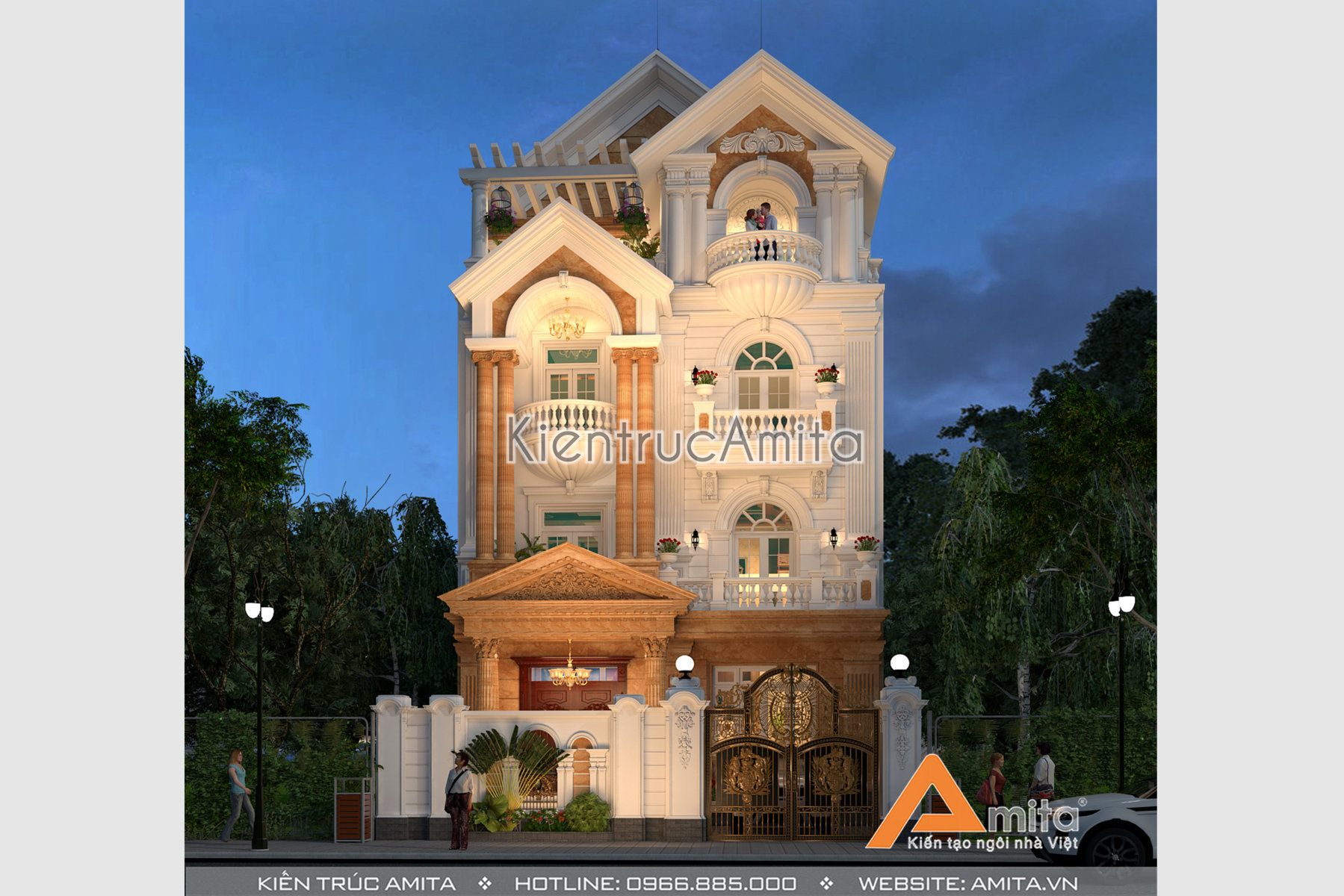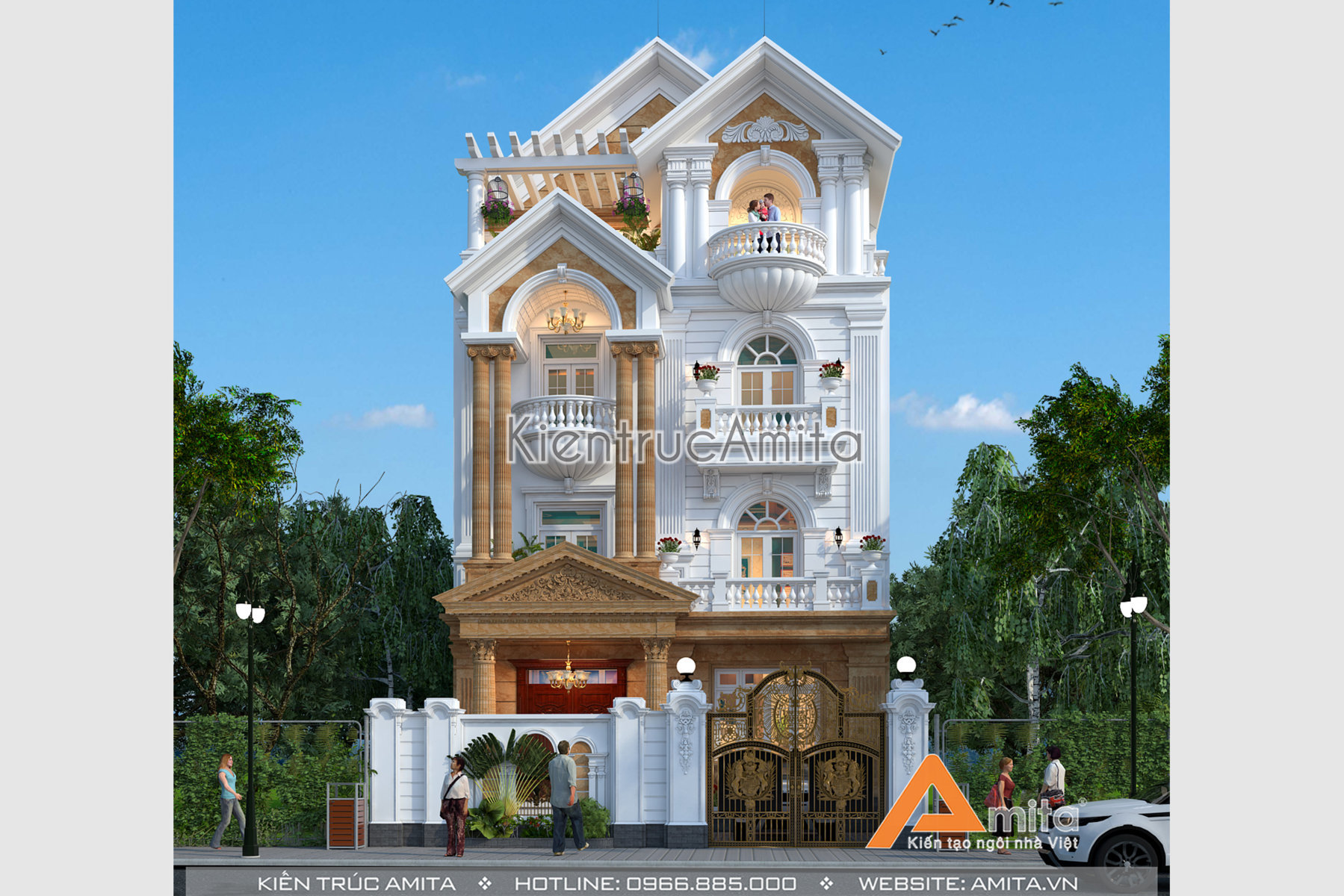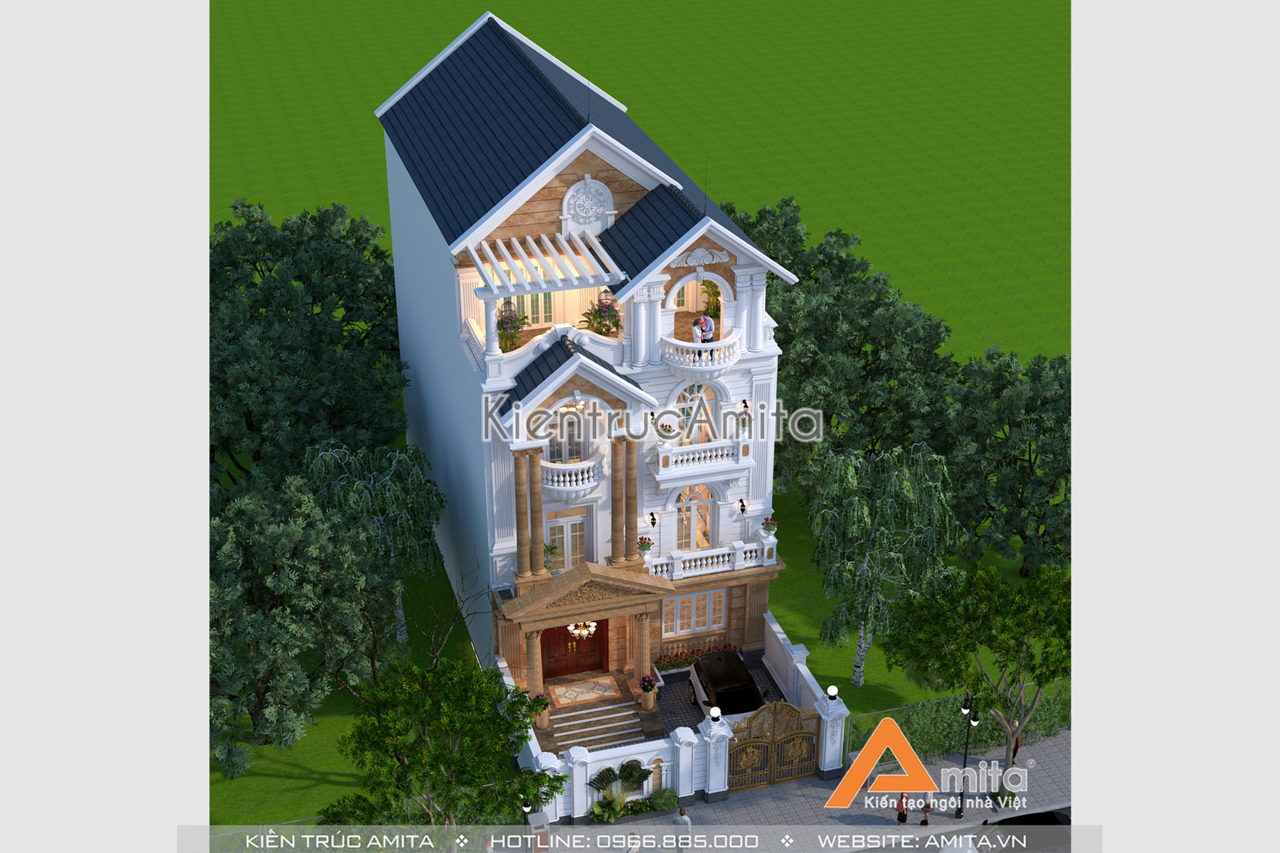Với đội ngũ kiến trúc sư giàu kinh nghiệm từ nhiều trường đại học nổi tiếng, chúng tôi tự tin đem lại sự hài lòng cho mọi gia chủ. Nếu như bạn thích mẫu thiết kế biệt thự 4 tầng phong cách tân cổ điển thì hãy liên hệ với kiến trúc Amita để được tư vấn miễn phí và cụ thể: