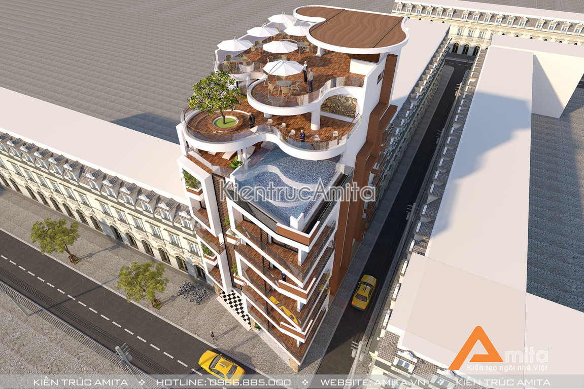 Không gian sân thượng ấn tượng của mẫu khách sạn hiện đại