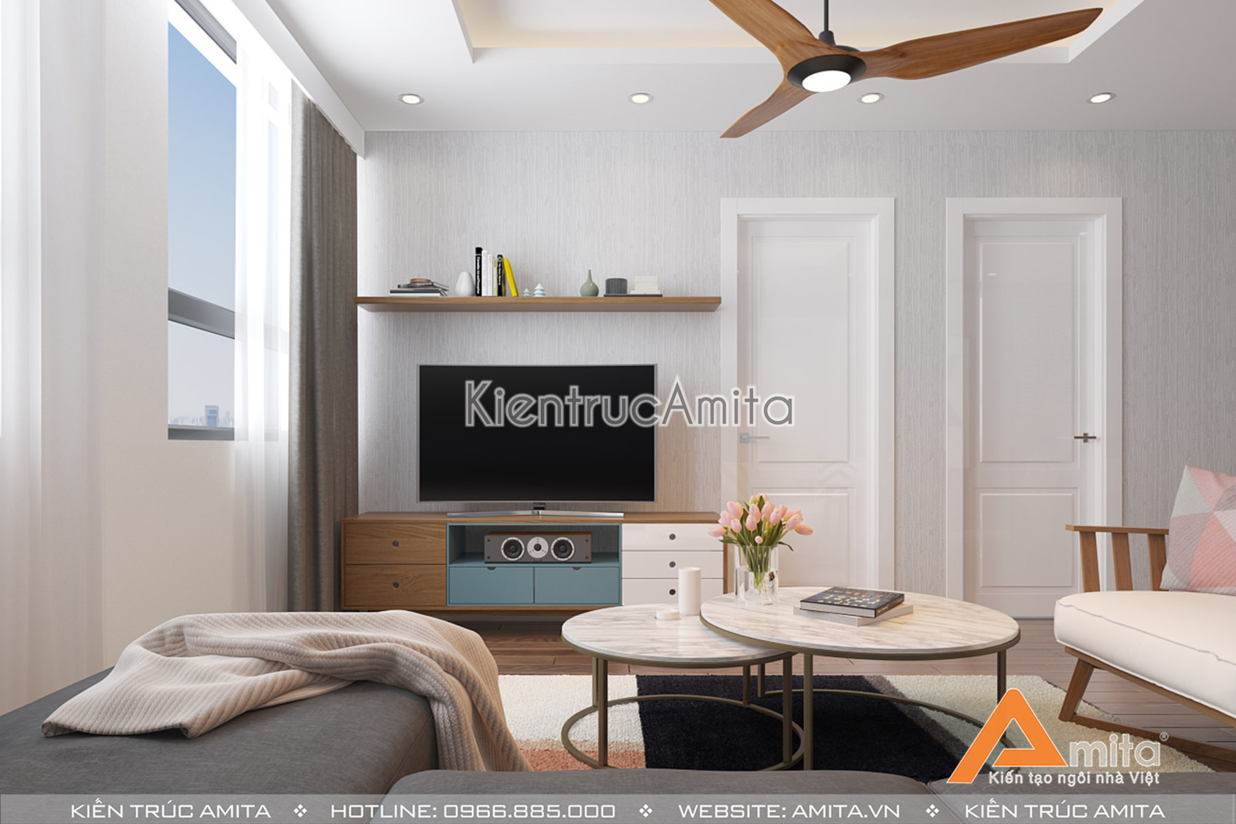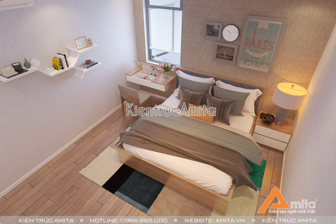 Không chỉ là biệt thự lớn, chung cư rộng, mà bất kỳ một yêu cầu thiết kế nào thì các KTS Amita cũng làm việc nghiêm túc để mang đến những sản phẩm không những đẹp mà còn phải phù hợp với mức đầu tư của gia chủ và thiết kế nội thất chung cư hiện đại ở Hà Nội này cũng không phải ngoại lệ.