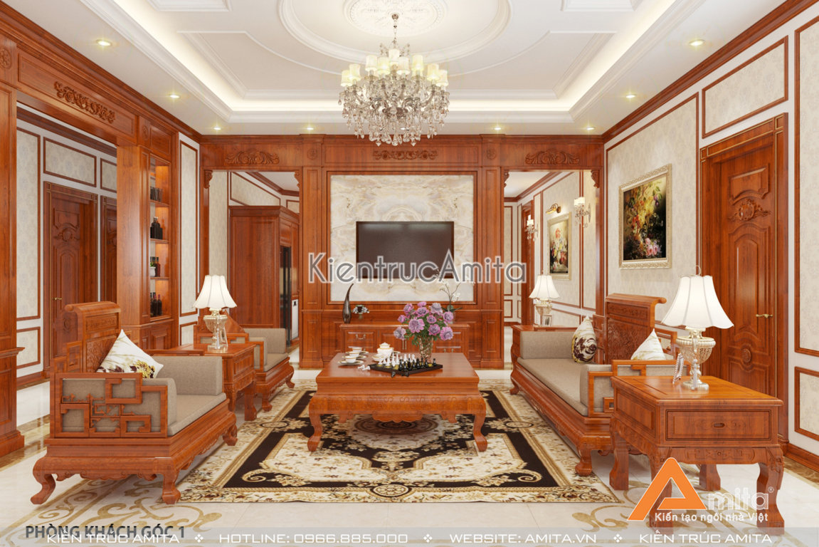 II. Những hình ảnh phối cảnh 3D của mẫu thiết kế nội thất đẹp phong cách tân cổ điển NT12027: