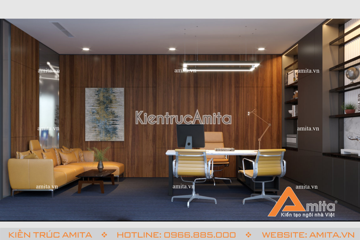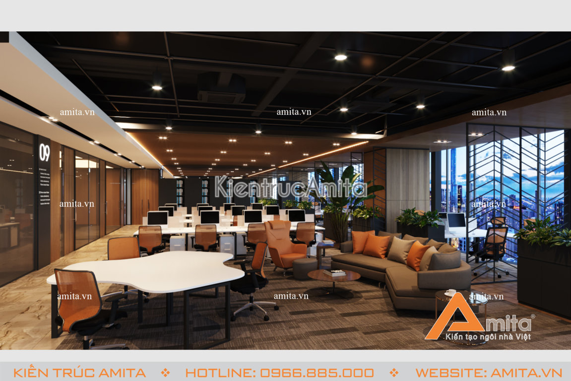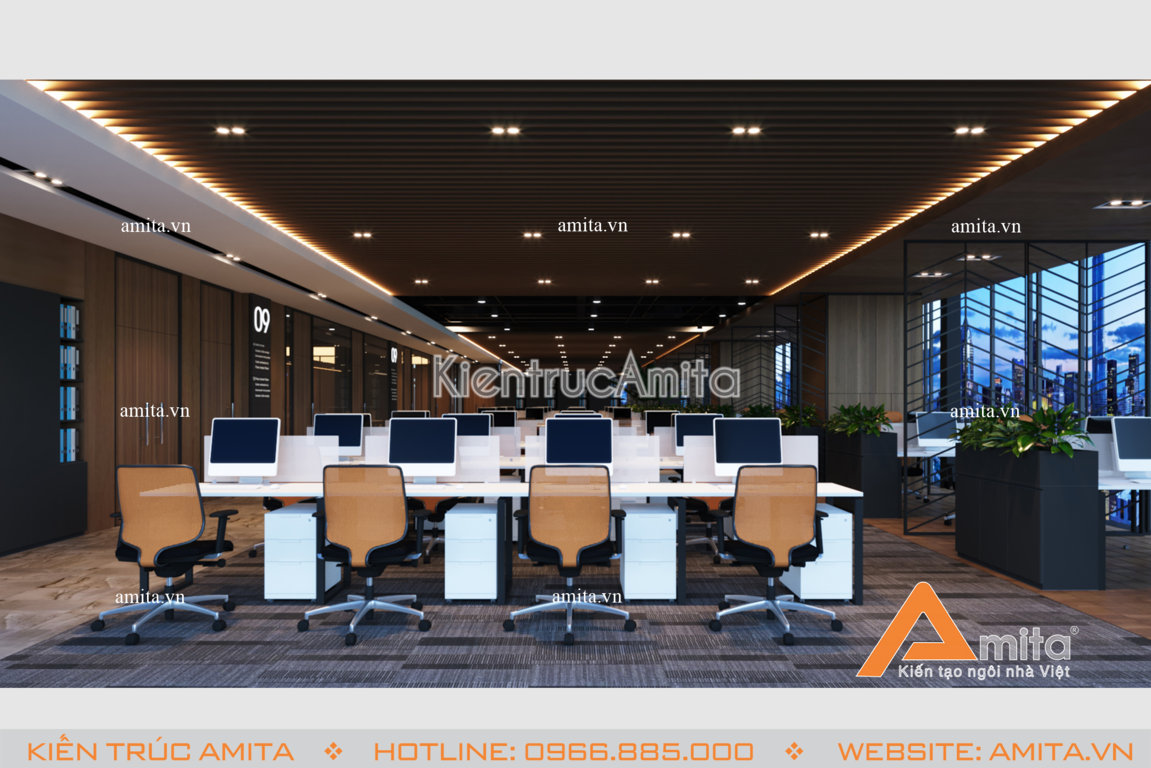 Thiết kế nội thất văn phòng hiện đại vô cùng sang trọng, trang nhã tại Hà Nội. Mẫu thiết kế này phù hợp với các không gian văn phòng làm việc cao cấp tại các thành phố lớn. Với mỗi công trình, các kiến trúc sư Amita luôn tìm hiểu kỹ nhu cầu của khách hàng và nghiên cứu kỹ mặt bằng để tối ưu tiện nghi sử dụng và đề cao tính thẩm mỹ khi thiết kế. Hãy cùng chiêm ngưỡng mẫu nội thất hiện đại này và liên hệ với chúng tôi để được tư vấn miễn phí.